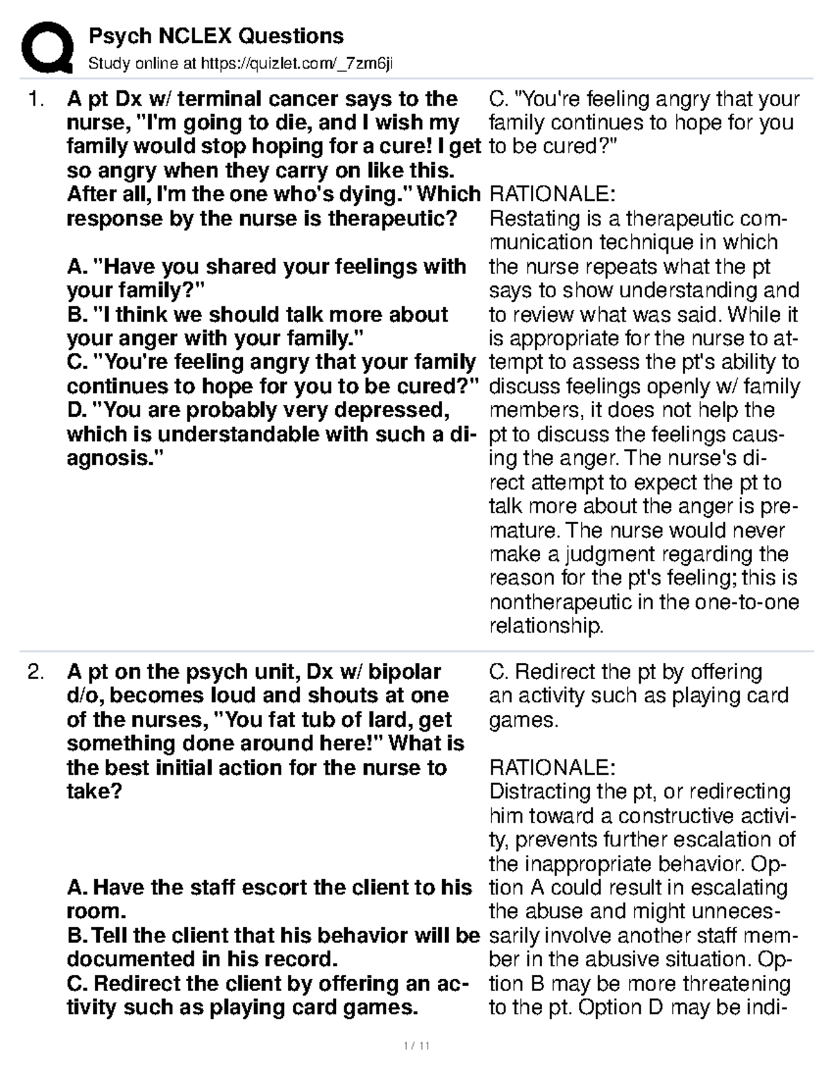 Quizlet Psychiatric Nursing