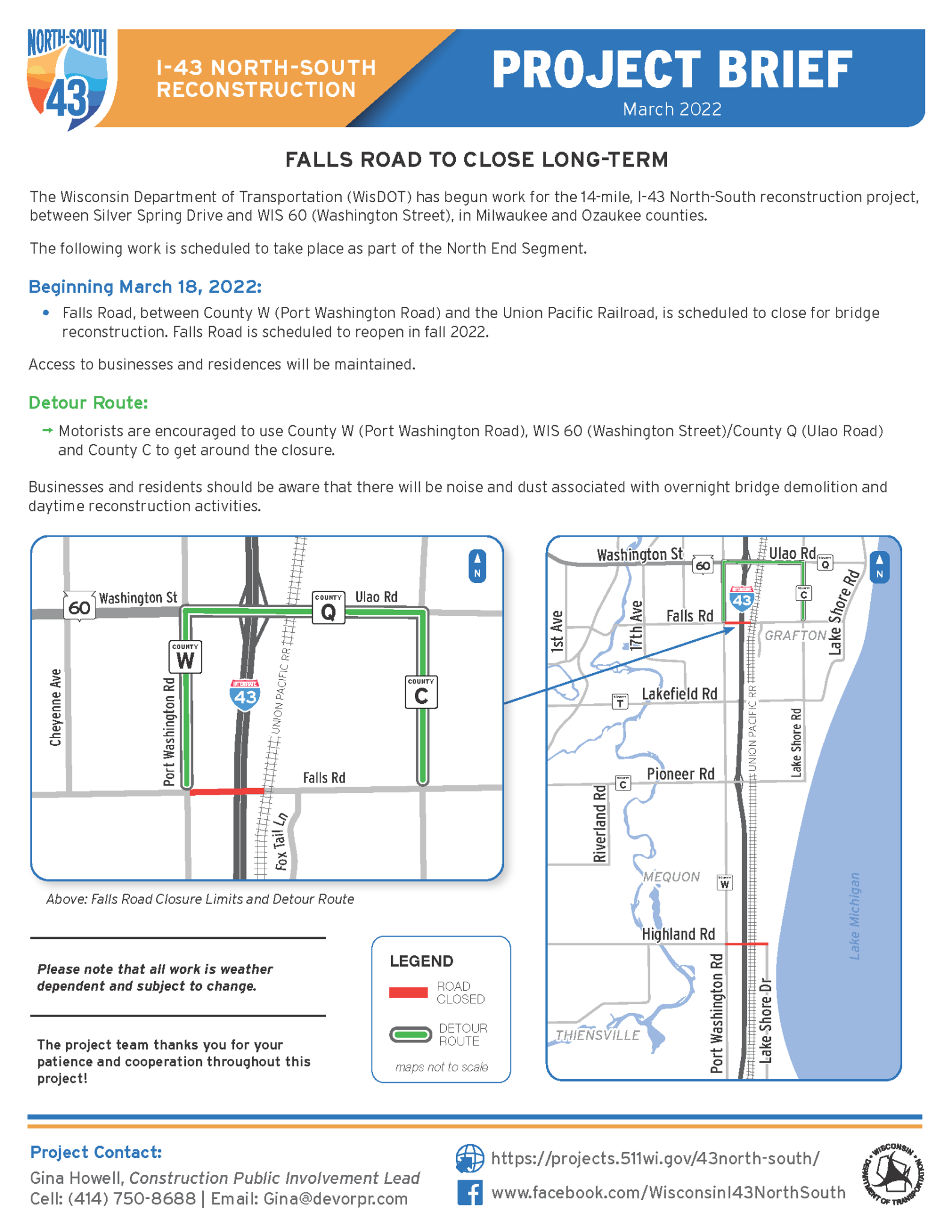 3/18/22 – Falls Rd Closure – I-43 NORTH-SOUTH (Glendale to Grafton)