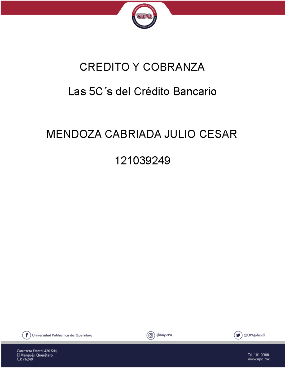 Ensayo de las 5C's - resumen de las 5C´s - CREDITO Y COBRANZA Las 5C ́s