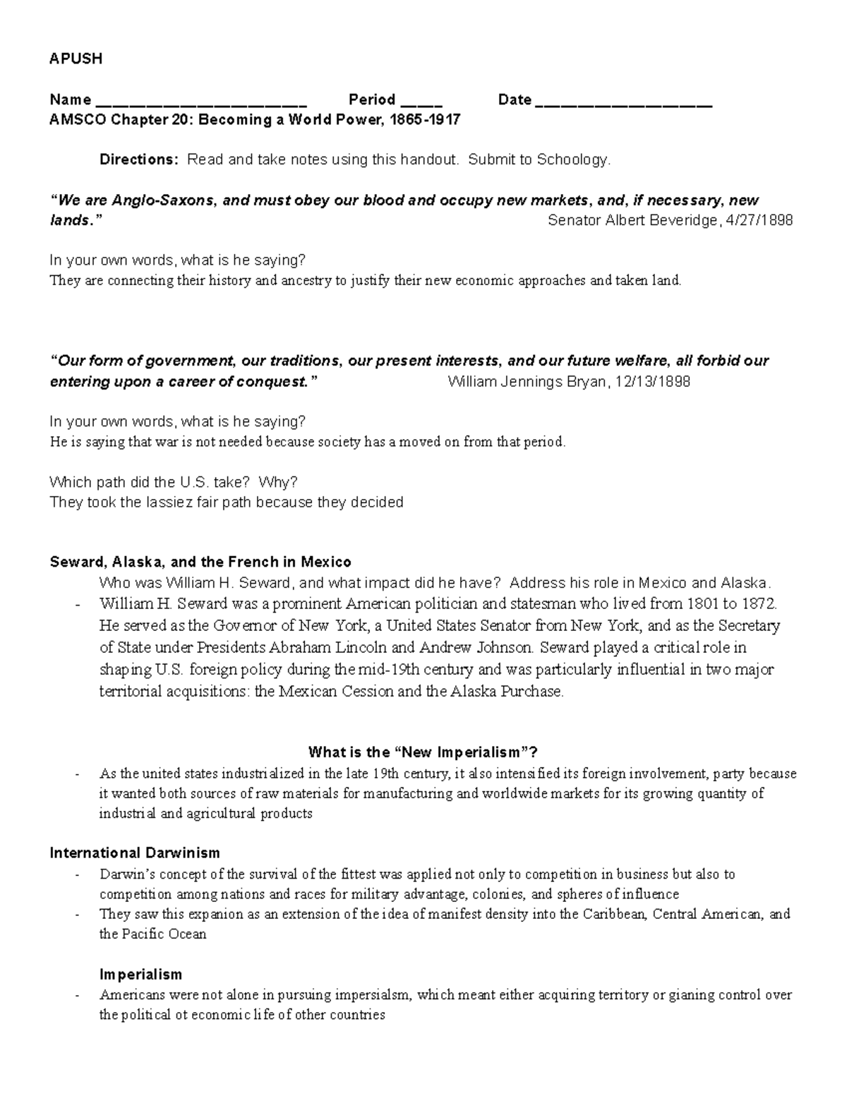 Copy of 7.1 HW Amsco Chapter 20 Becoming a World Power, 1865-1917Copy of 7.1 HW Amsco Chapter 20 Becoming a World Power, 1865-1917 of Amsco Chapter 20 . Source: www.studocu.com