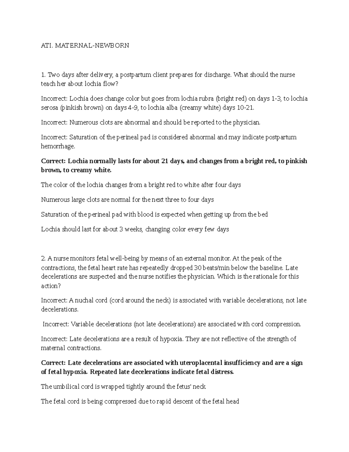 ATI Maternal Newborn Study Guide - ATI Maternal-Newborn Study Guide