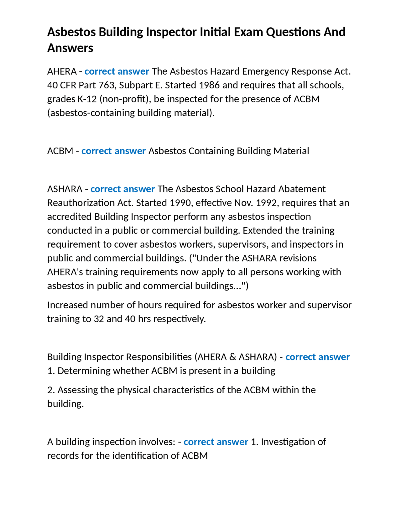 Asbestos Building Inspector Initial Exam Questions And Answers | ExamsAsbestos Building Inspector Initial Exam Questions And Answers | Exams of Bluffton Mesothelioma Legal Question . Source: www.docsity.com