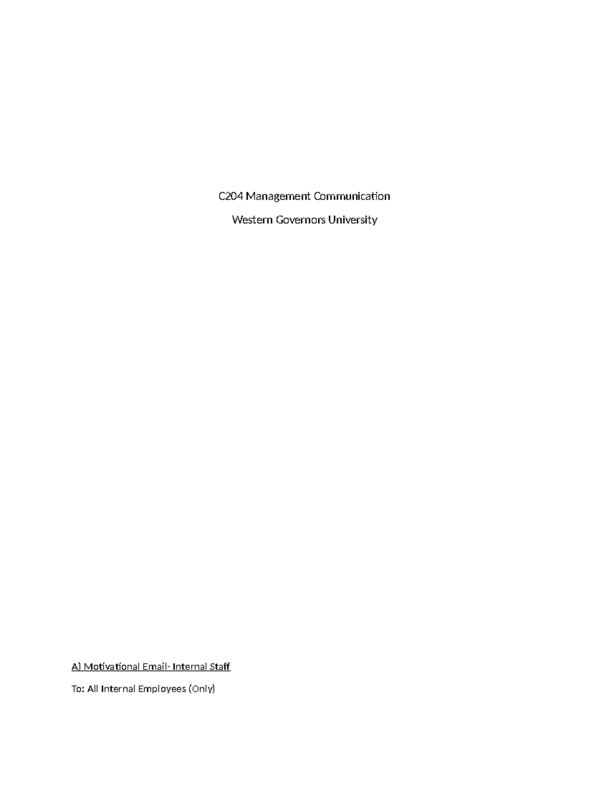 C204 Task 1 for WGU - Motivational Email to Internal Staff To: All