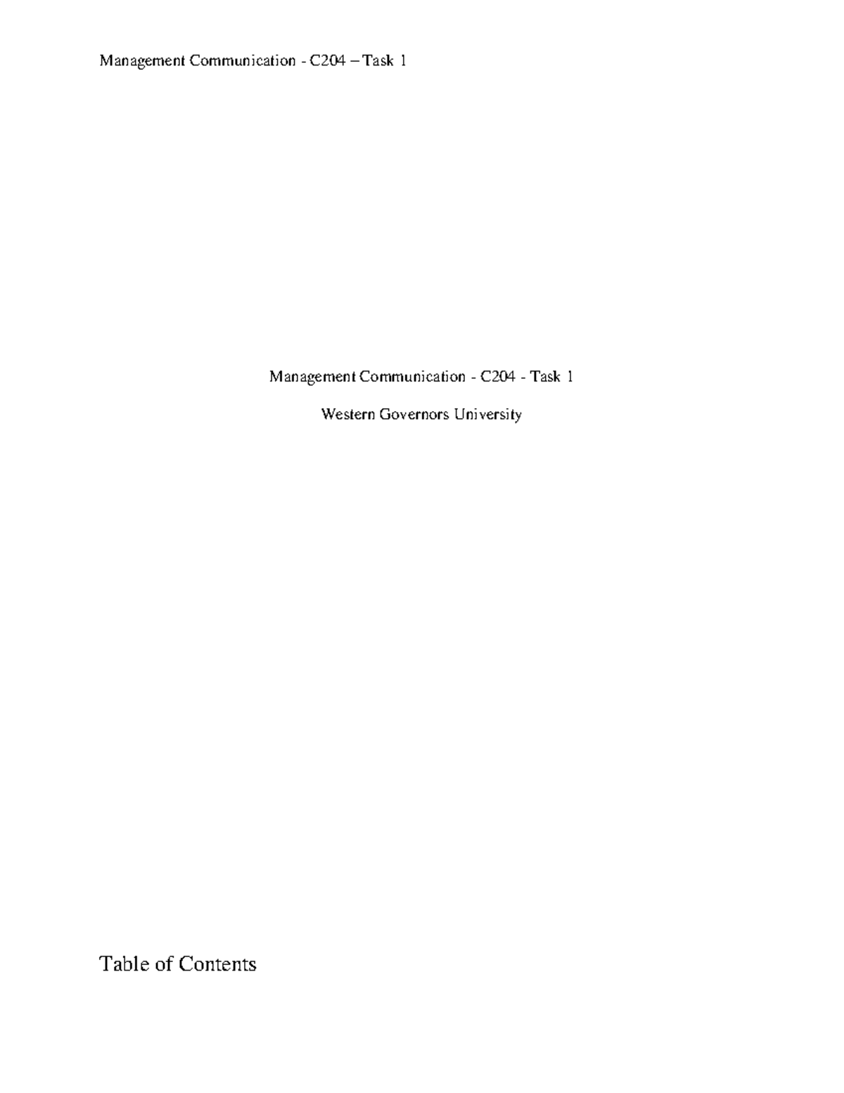 Management Communications C204 Task 1 - Western Governors University