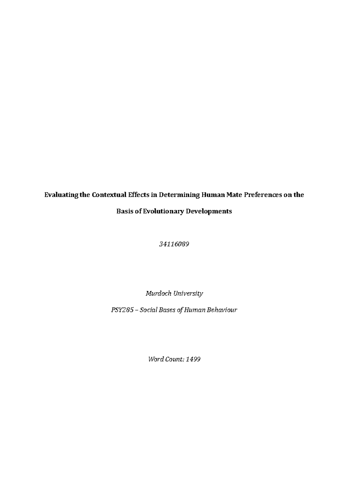 PSY285 Essay - human mate preferences - Evaluating the ContextualPSY285 Essay - human mate preferences - Evaluating the Contextual of Can A Dog And Human Mate . Source: www.studocu.com