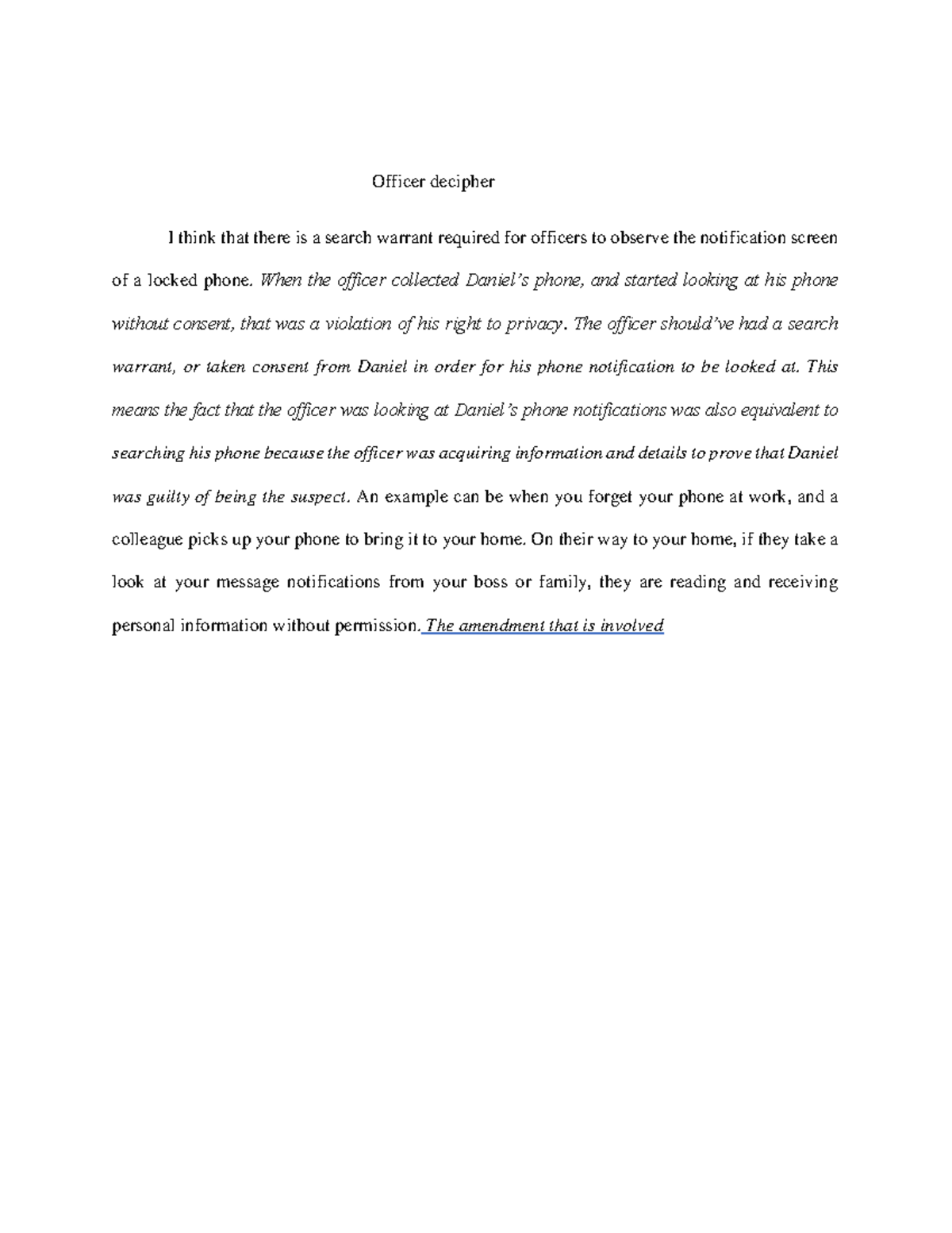 Officer reports - Case understanding - Officer decipher I think that