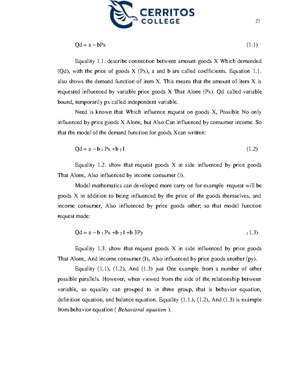 Document Study in Cerritos College - Microeconomics-12 - 21 Qd = a