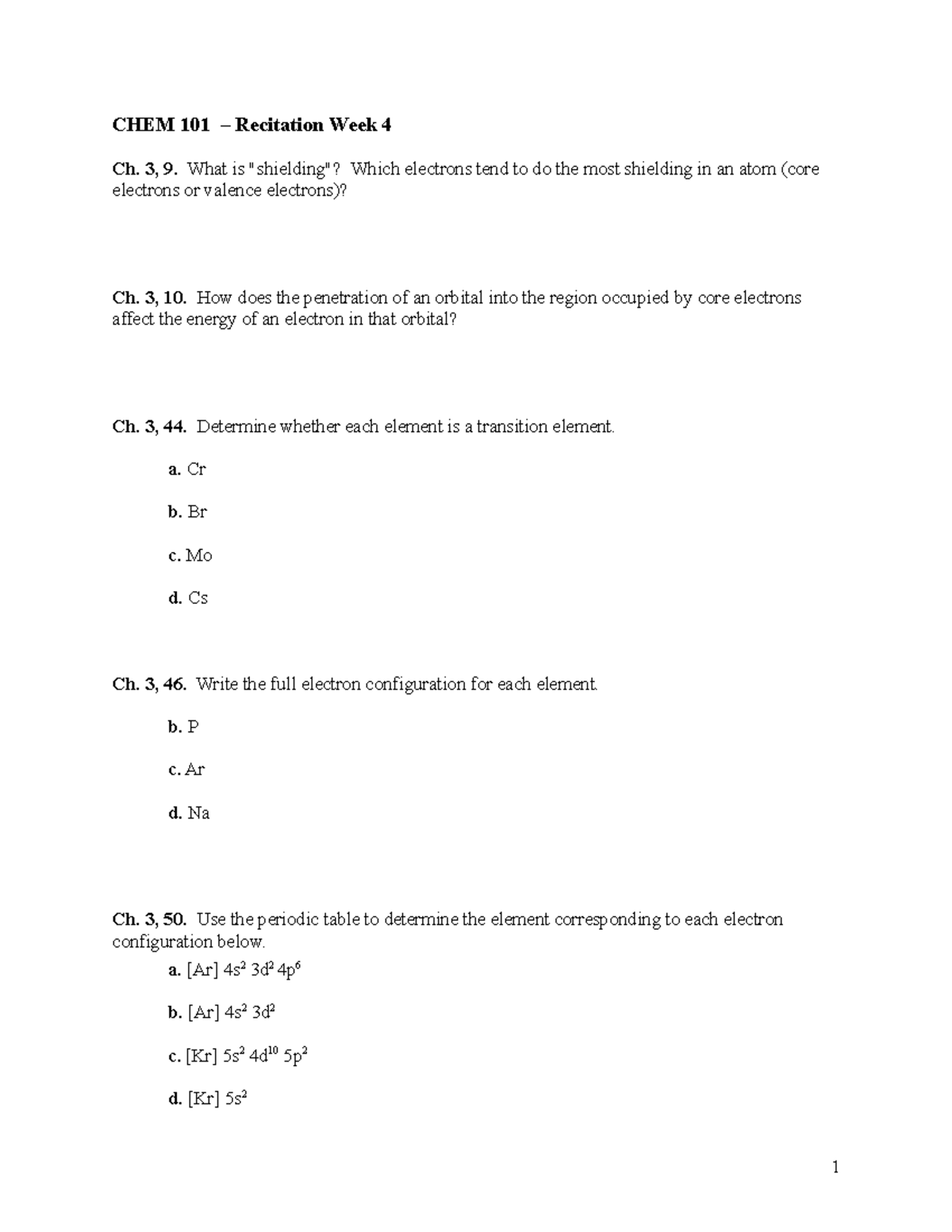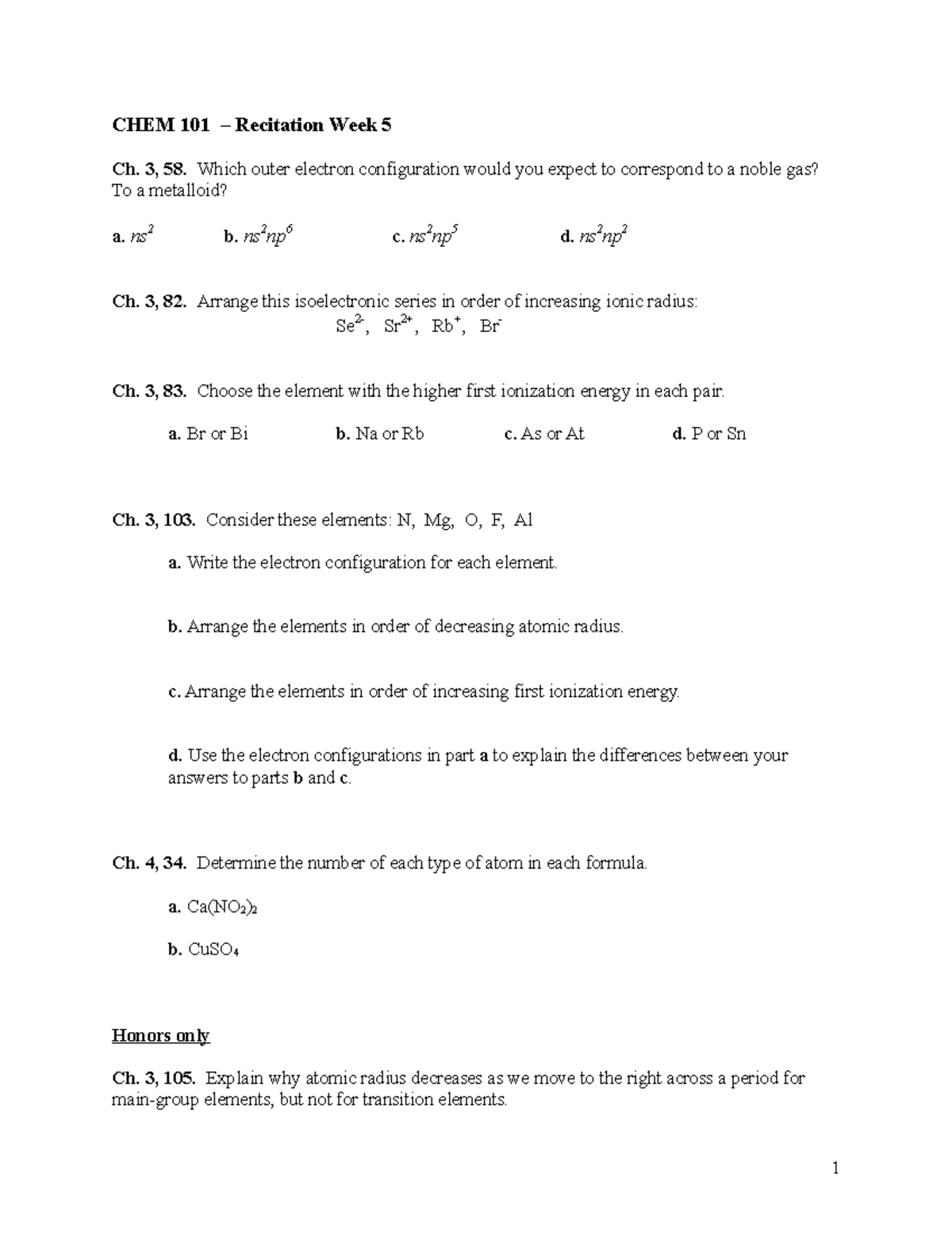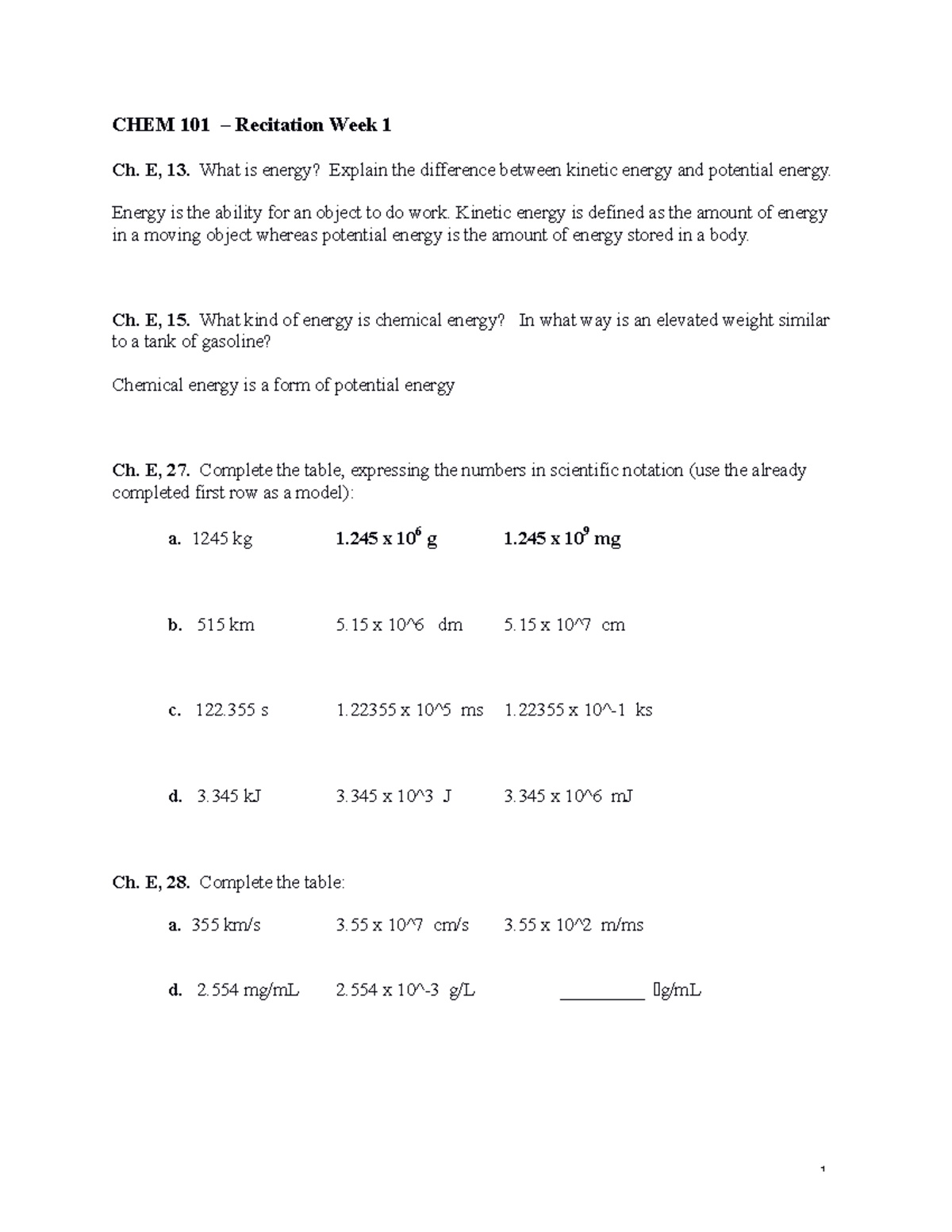 CHEM 101 Recitation Week 1 - CHEM 101 – Recitation Week 1 Ch. E, 13CHEM 101 Recitation Week 1 - CHEM 101 – Recitation Week 1 Ch. E, 13 of Chem 101 Quizlet . Source: www.studocu.com
