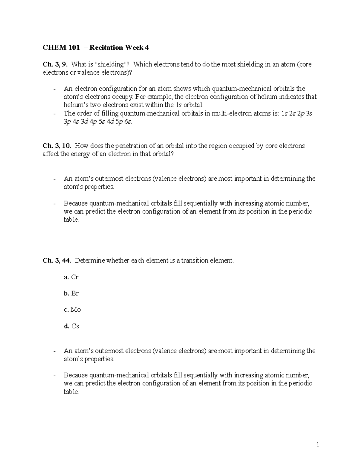 CHEM 101 Recitation Week 13 - ####### CHEM 101 – Recitation Week 9 ChCHEM 101 Recitation Week 13 - ####### CHEM 101 – Recitation Week 9 Ch of Chem 101 Quizlet . Source: www.studocu.com