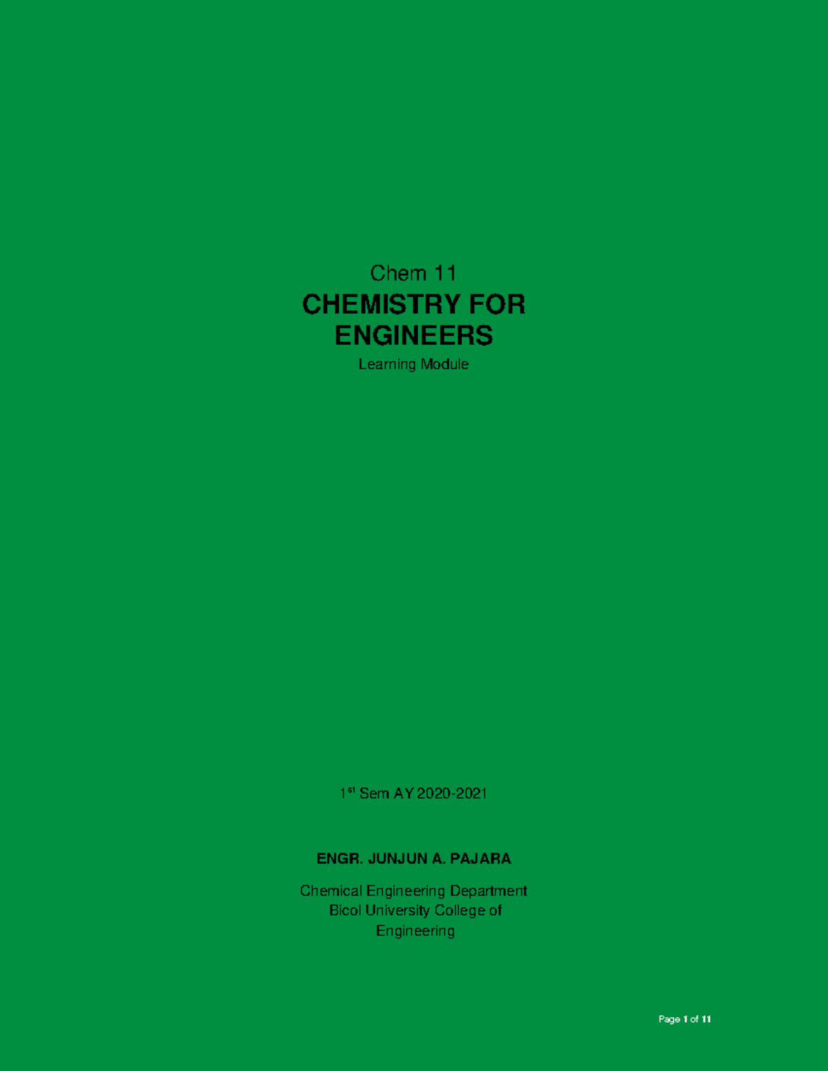 Chem11 Module 1 - XAXAXAXAXAX - Chem 11 CHEMISTRY FOR ENGINEERS