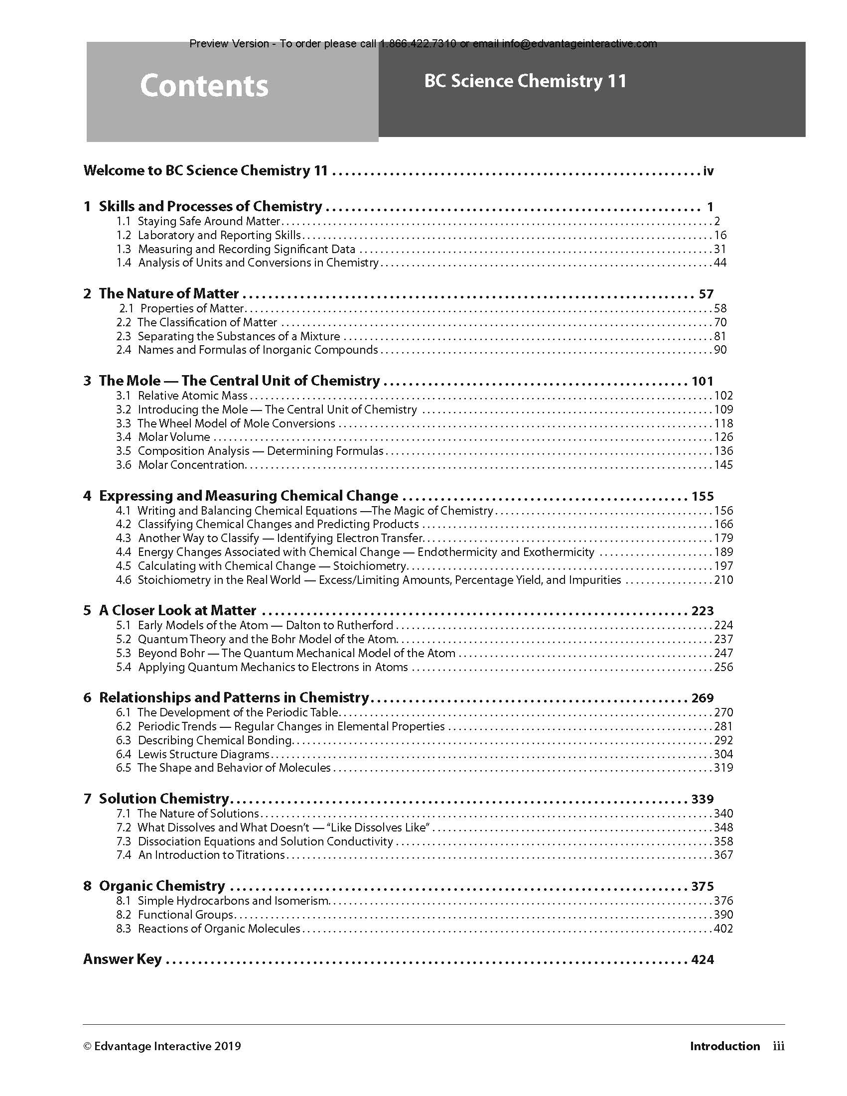 Chem 11 TOC – Edvantage Interactive