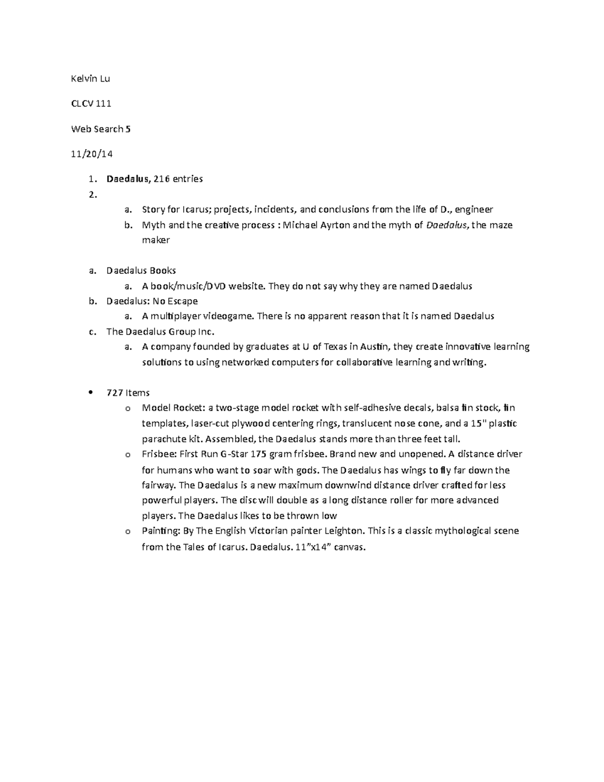 Web Search 5 - Kelvin Lu CLCV 111 Web Search 5 11/20/ Daedalus, 216