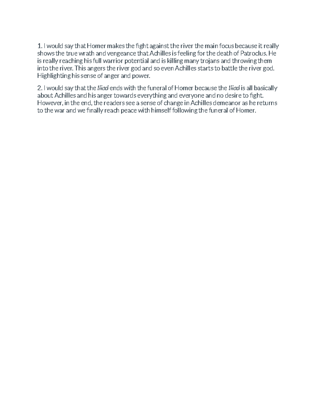 Cl CV 115 Midterm essay - What are the objects that Achilles anger for