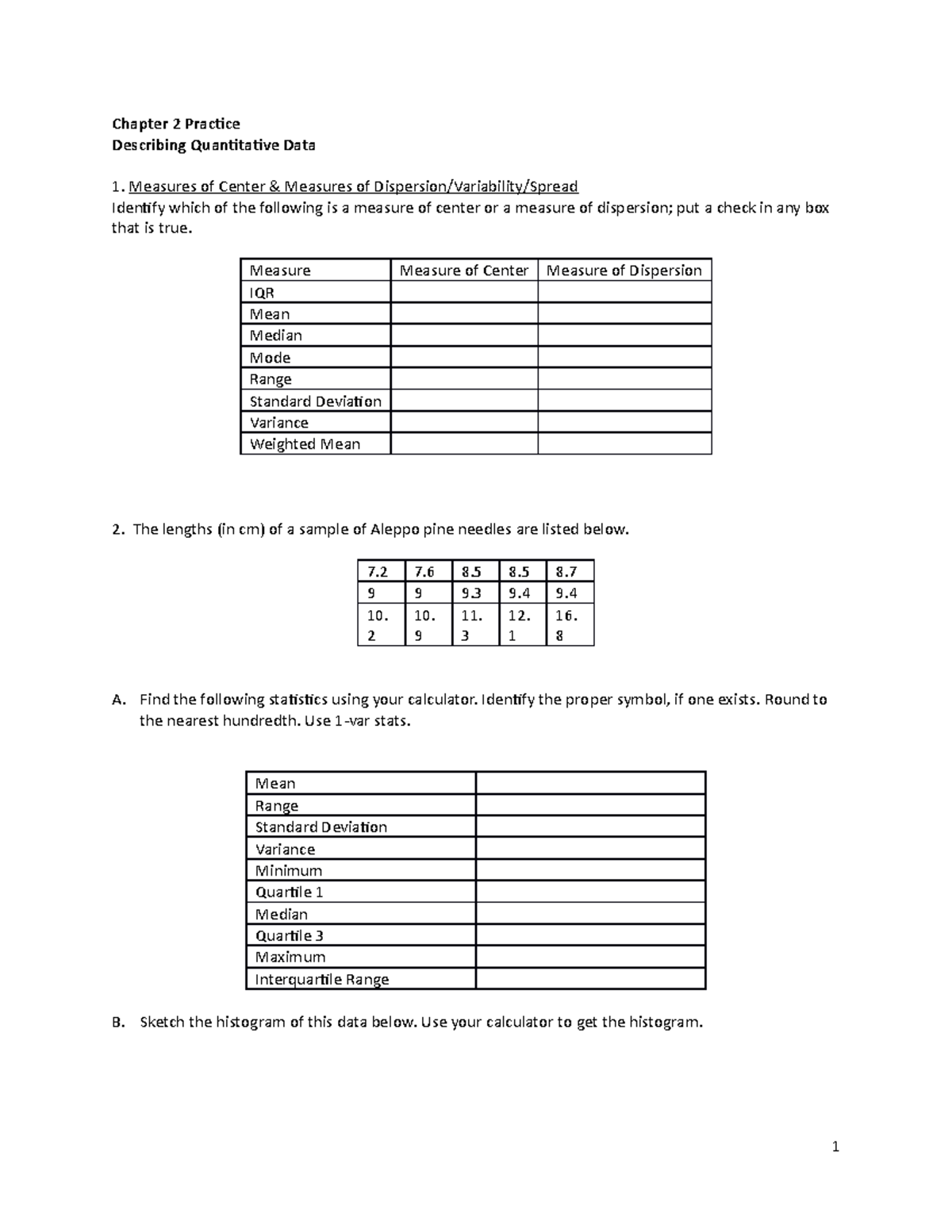 Ch 2 Practice - Chapter 2 Practice Describing Quantitative Data