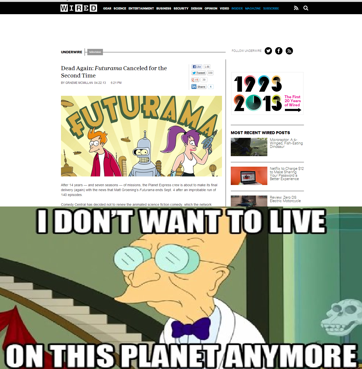 Futurama is canceled again. | I Don't Want to Live on This PlanetFuturama is canceled again. | I Don't Want to Live on This Planet of Got Any More Meme . Source: knowyourmeme.com