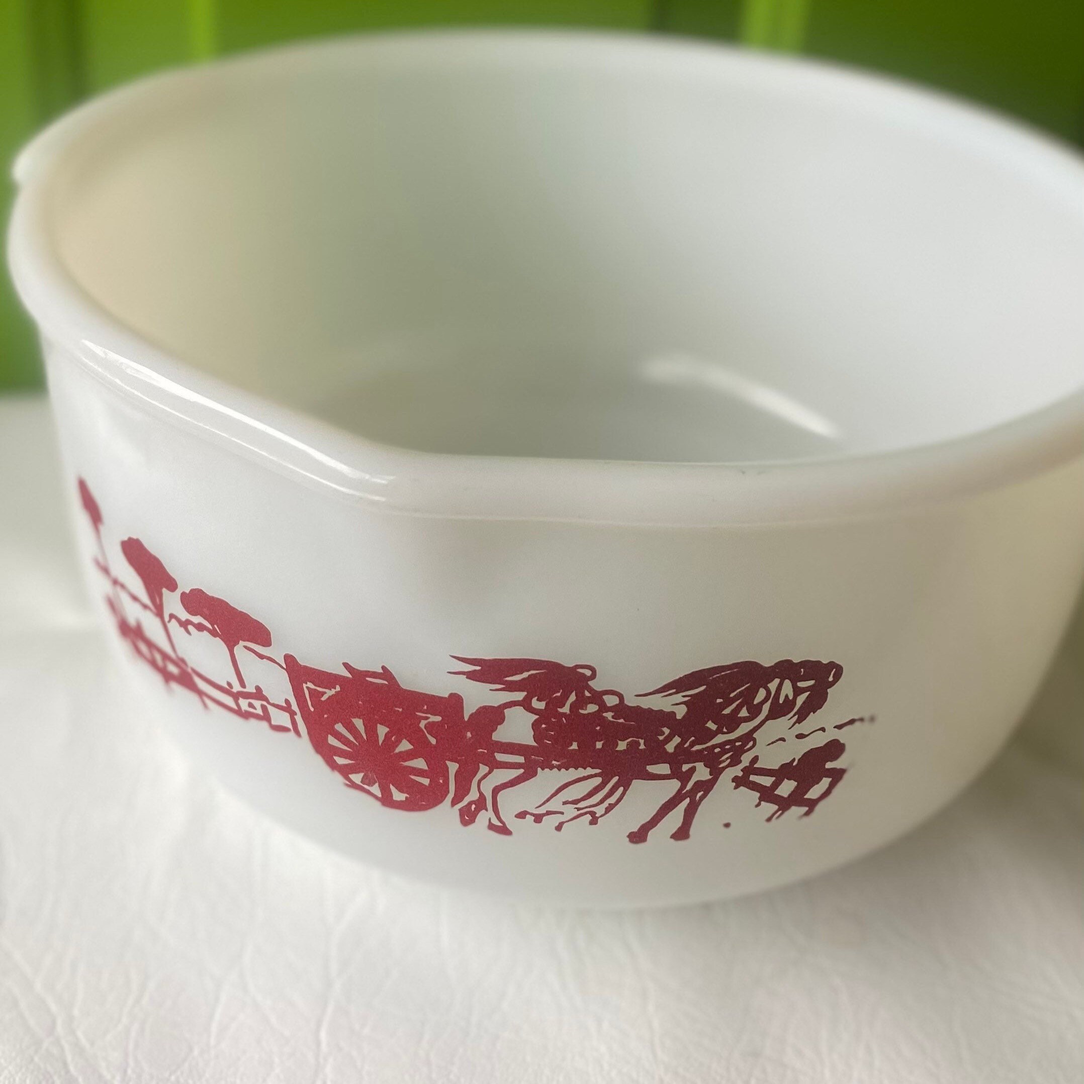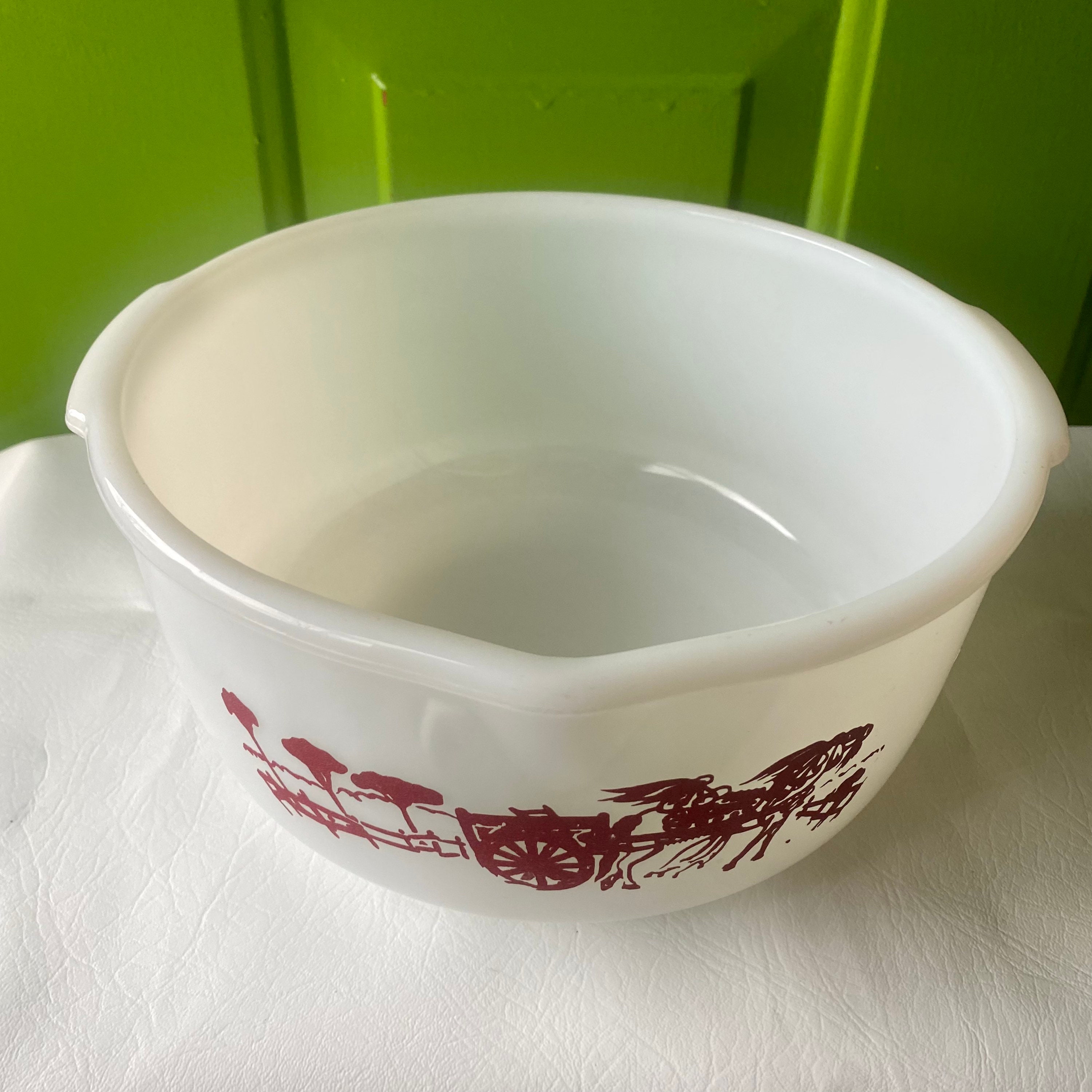 Webpyrex 444 gypsy caravan vintage 4qt large nesting mixing bowl white & red rare click here for more information