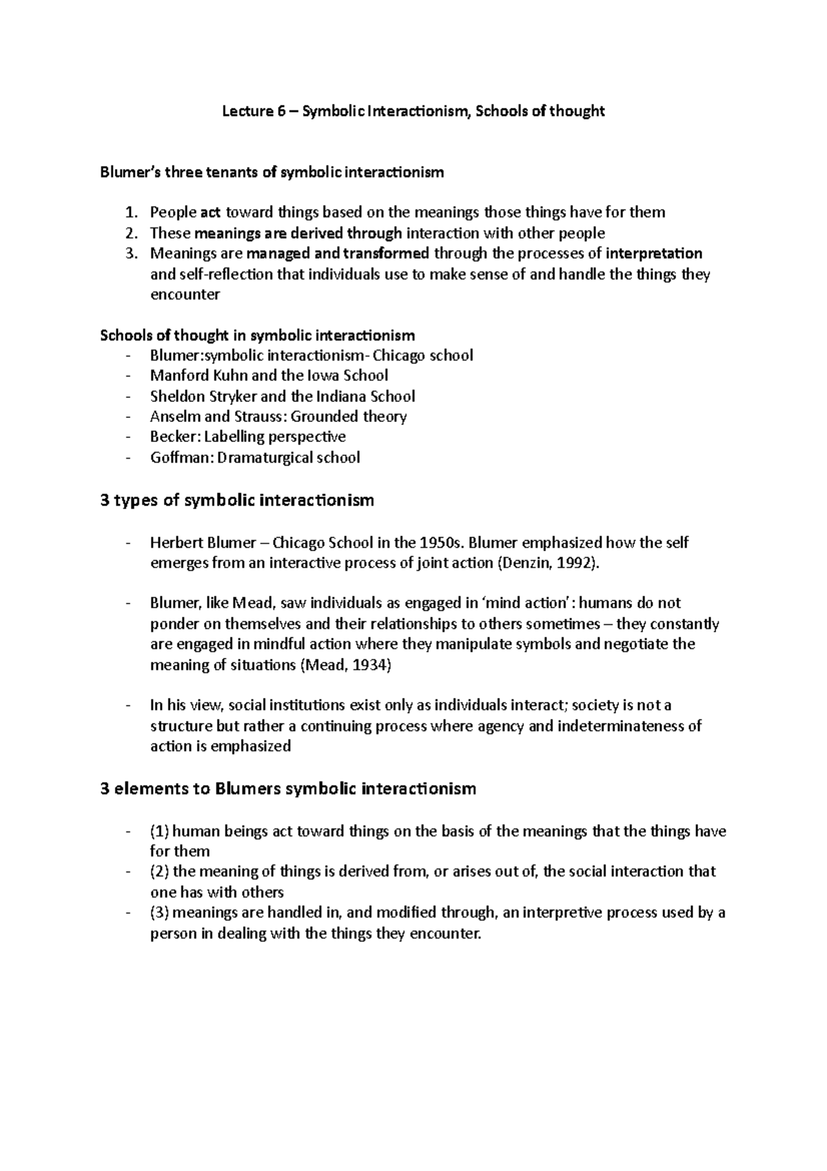 Webherber blumer (1900 to 1997) was a symbolic interactionist who argued that society consisted of individuals temporarily agreeing on shared meanings to the extent.