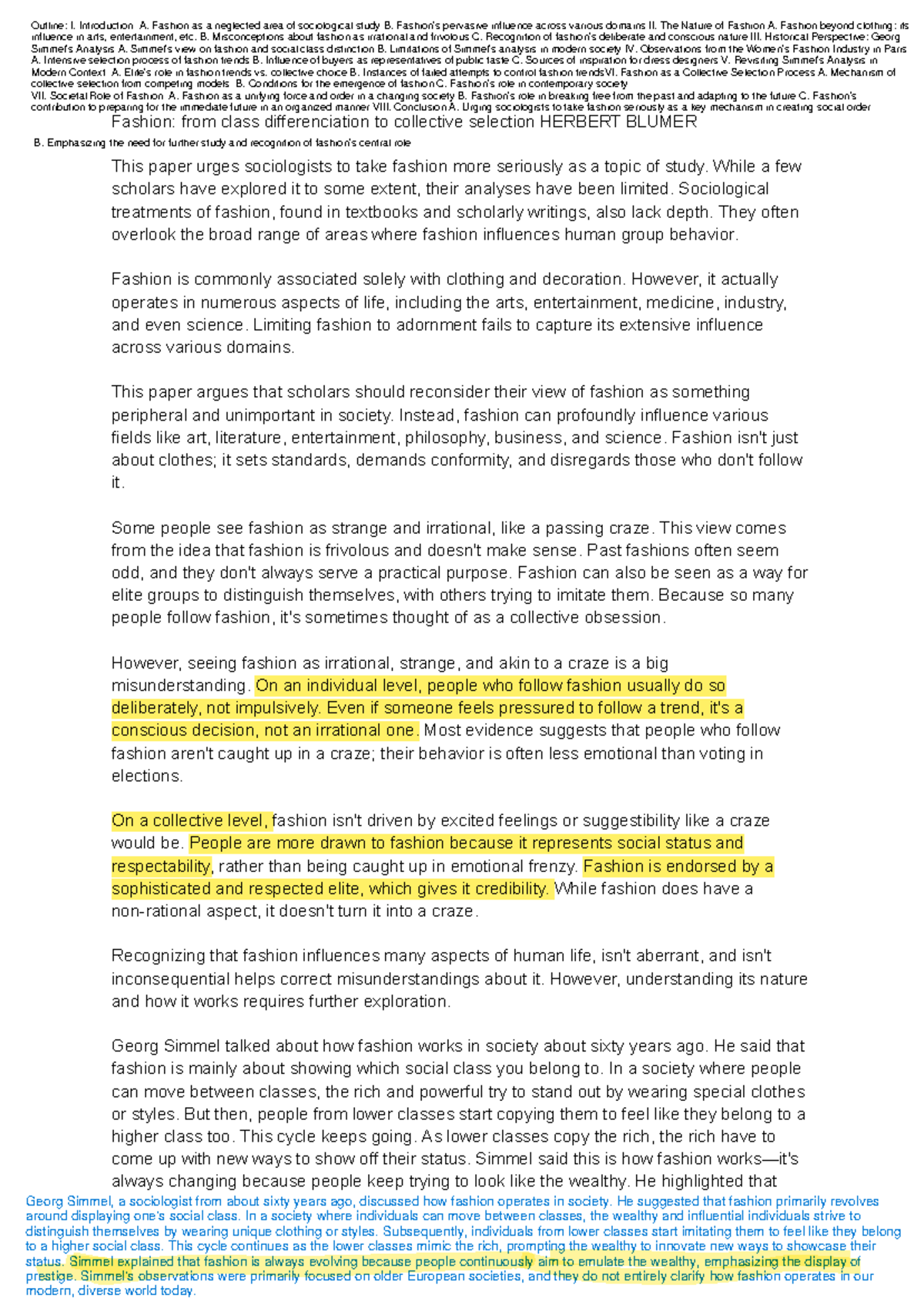 Blumer unit 1 - Fashion: from class differenciation to collective of Identify The True And False Statements About Herbert Blumer . Source: www.studocu.com