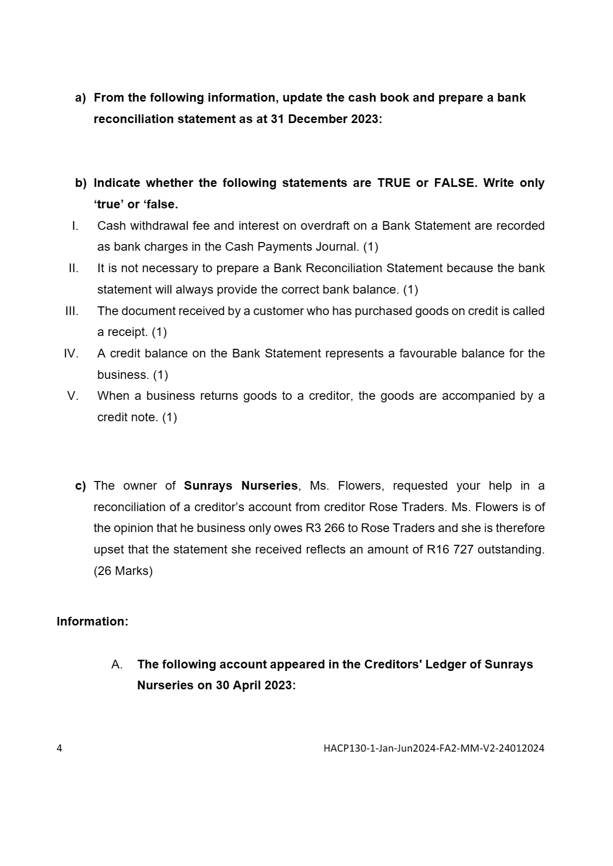 a) From the following information, update the cash book and prepare a