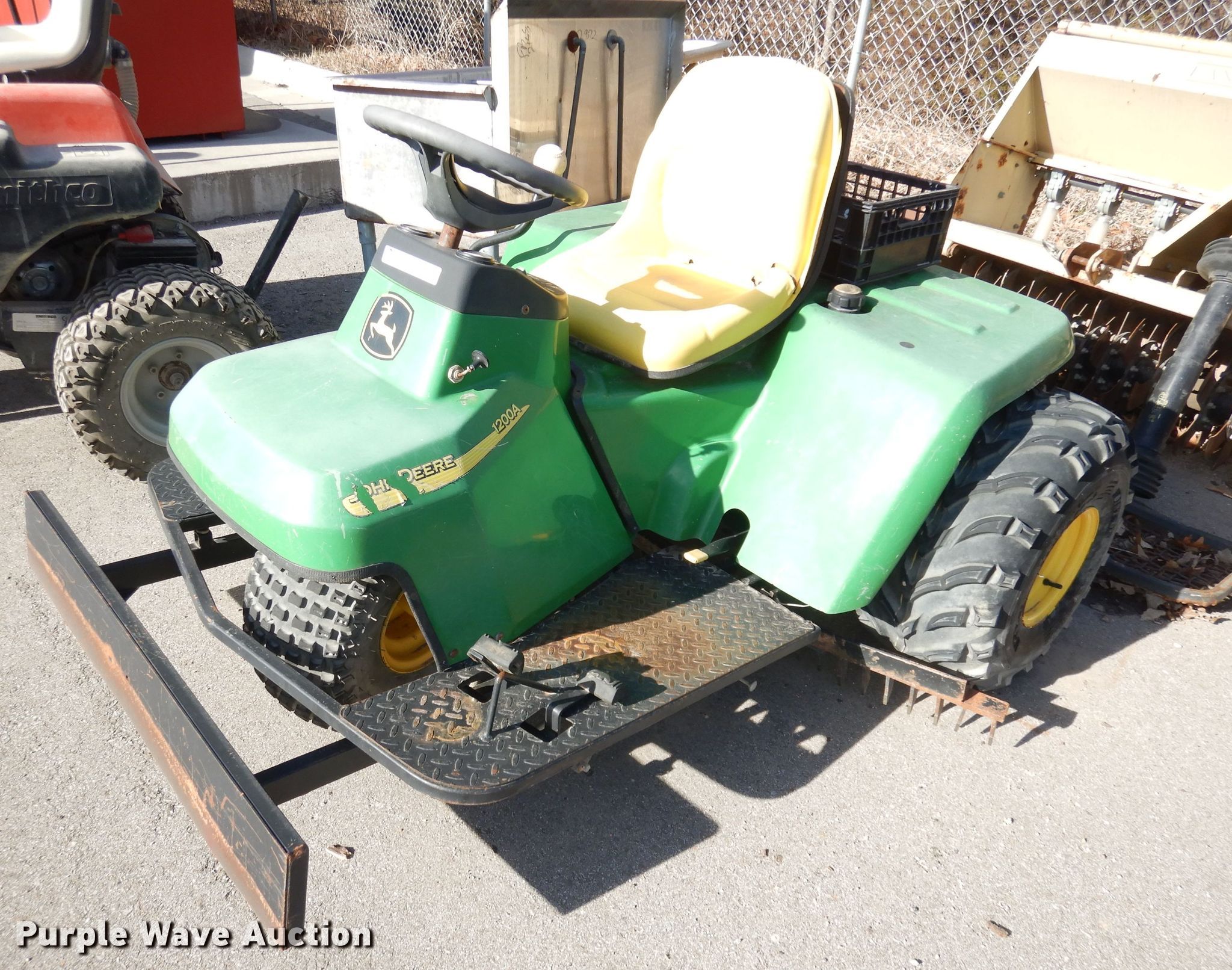 John Deere 1200 Bunker Rake, hydro, manual lift, 930 hrs, front bladeJohn Deere 1200 Bunker Rake, hydro, manual lift, 930 hrs, front blade of John Deere Leaf Rake . Source: www.bidspotter.com