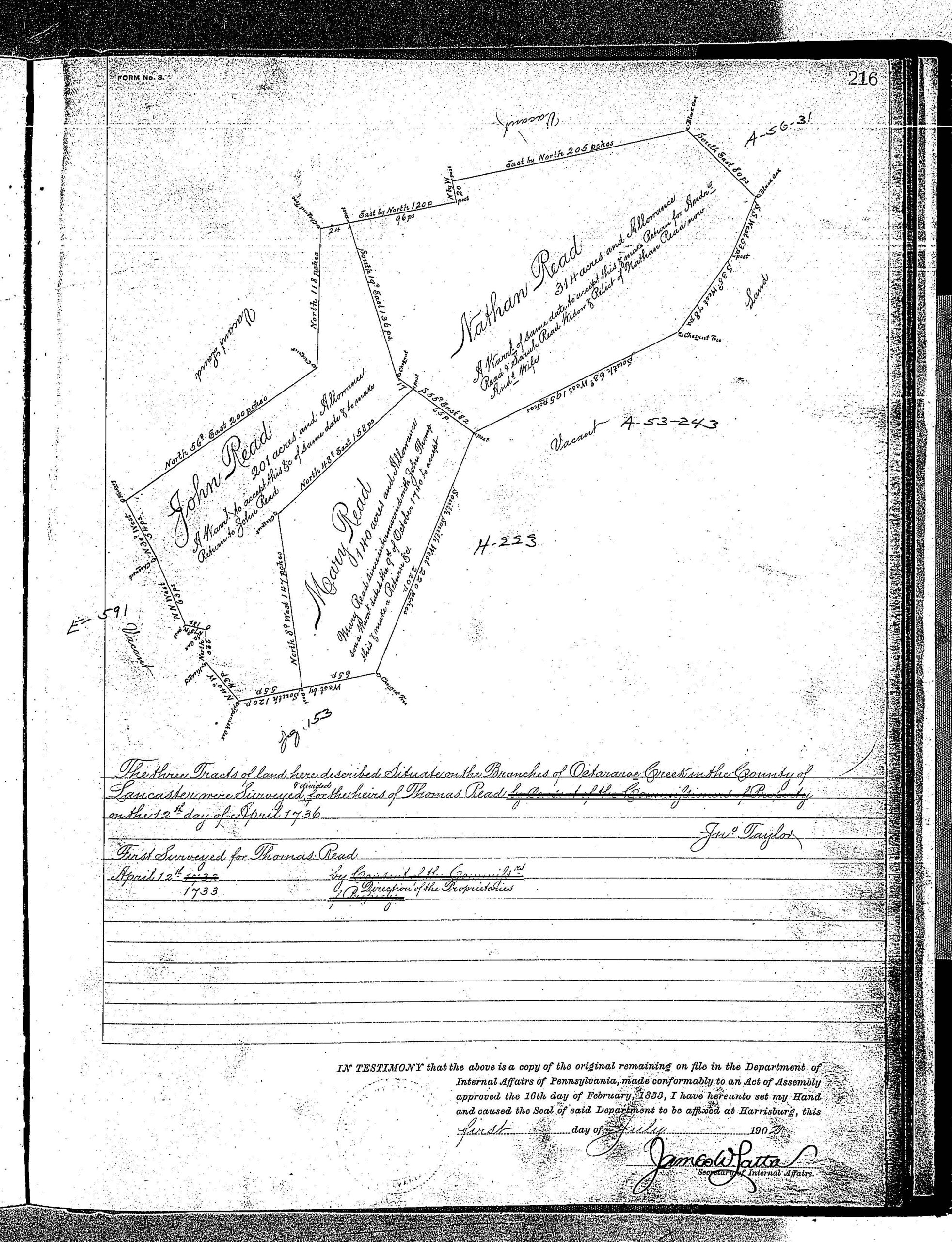 Selected Land Warrant Survey Maps from Lancaster and Dauphin Counties.