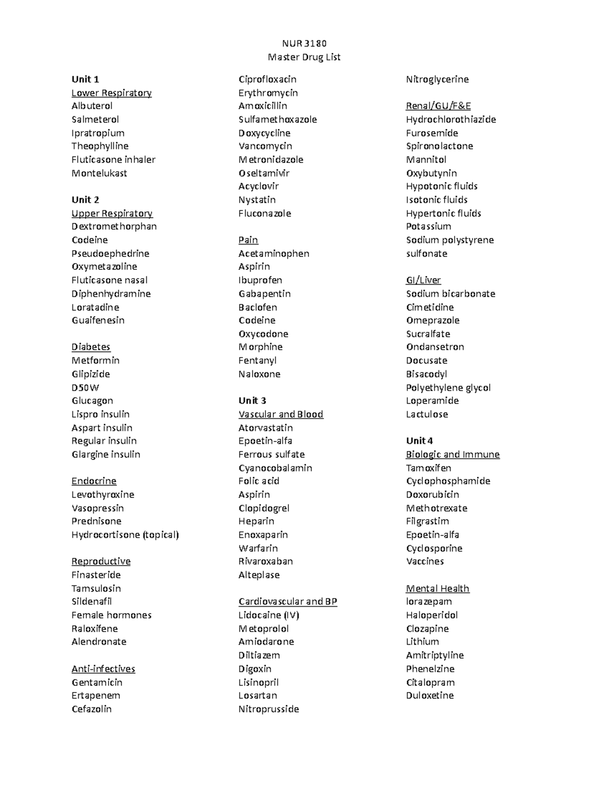 Master+drug+list+FA+22+%283%29 - NUR 3180 Master Drug List Unit 1 LowerMaster+drug+list+FA+22+%283%29 - NUR 3180 Master Drug List Unit 1 Lower of Myaarpmedicare Com Drug List 2024 . Source: www.studocu.com