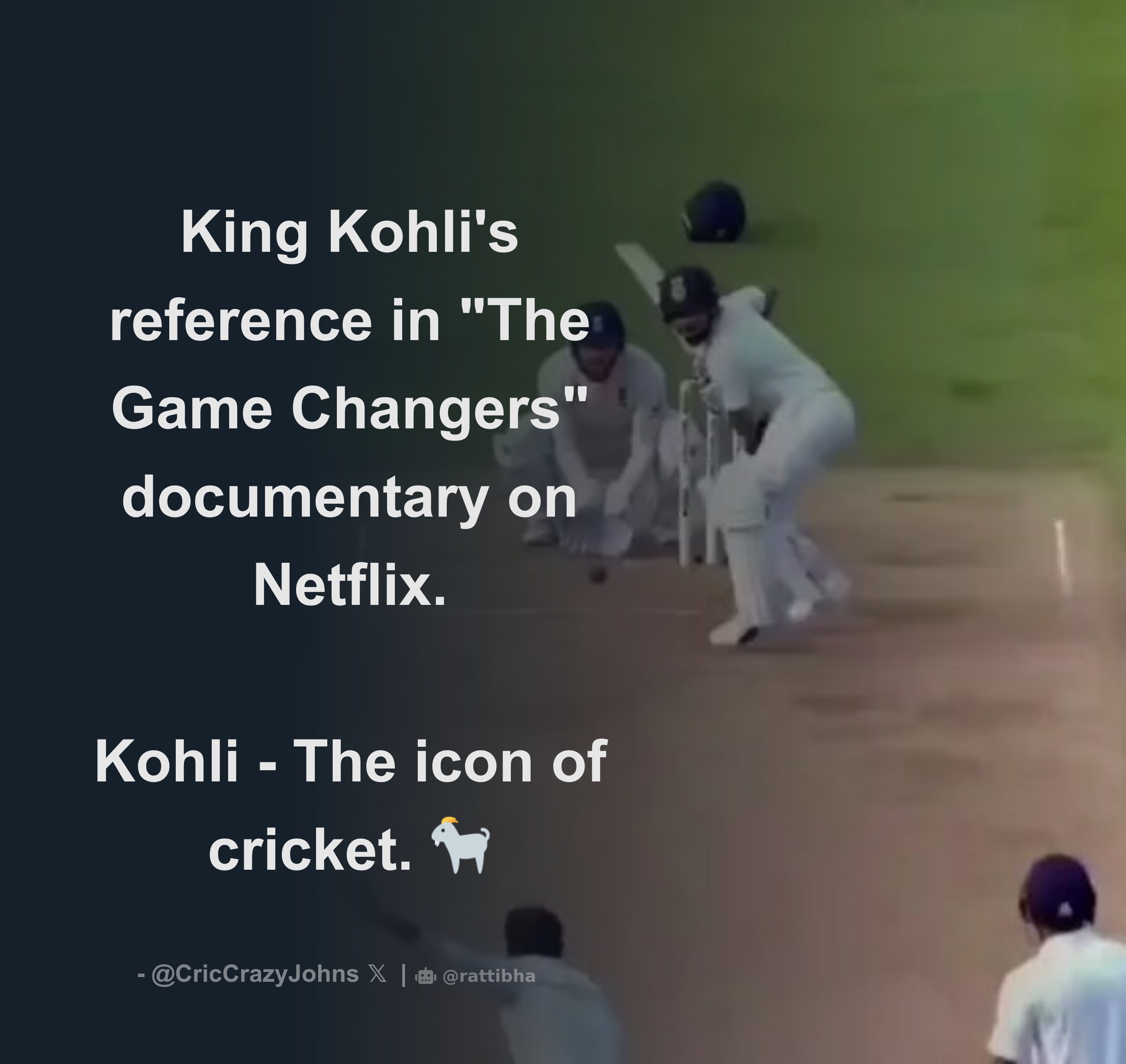 King Kohli's reference in "The Game Changers" documentary on Netflix