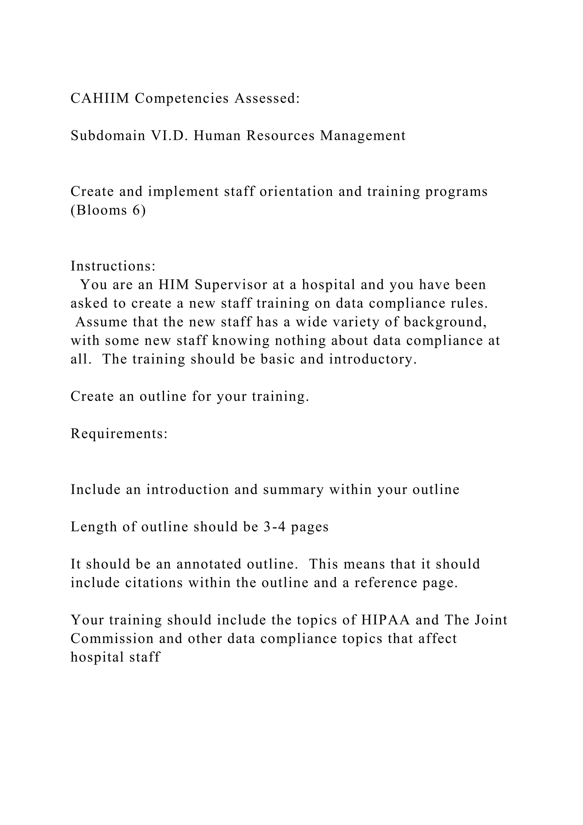 CAHIIM Competencies Assessed Subdomain VI.D. Human Resources Ma.docx