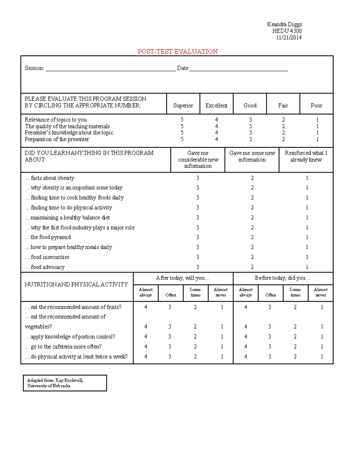 Post-test Evaluation Tool - Keandra Diggs HEDU 4300 11/21/ POST-TESTPost-test Evaluation Tool - Keandra Diggs HEDU 4300 11/21/ POST-TEST of Searchwin Pchhagerty Evaluation Tool . Source: www.studocu.com