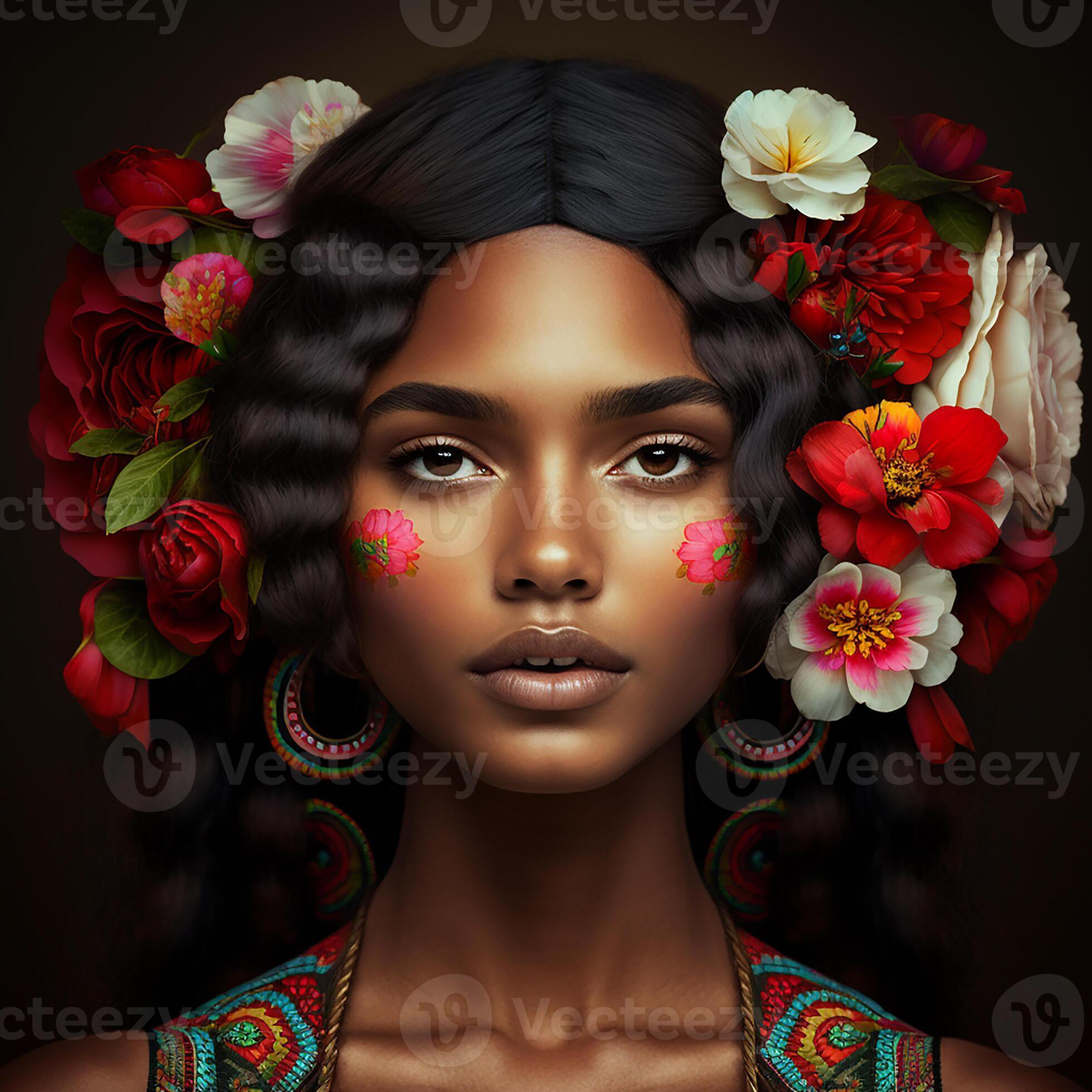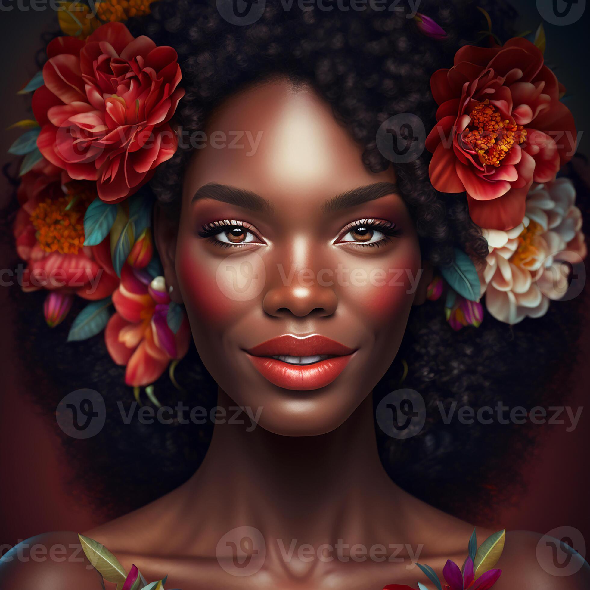 Portrait of sensual black woman with flowers in hair, 24086558 Stock of Sensual Black Love Makingpodcast Personal Html . Source: www.vecteezy.com