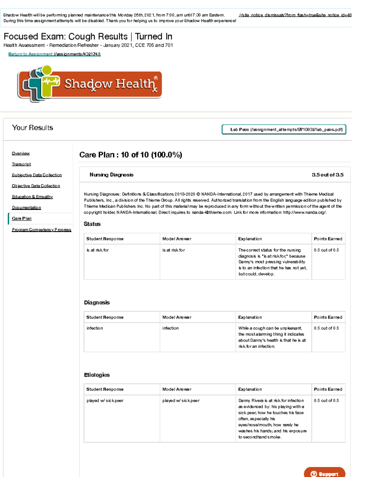 Focused Exam DANNY COUGH SHADOW HEALTH GRADED A in 2022 | Exam, Student