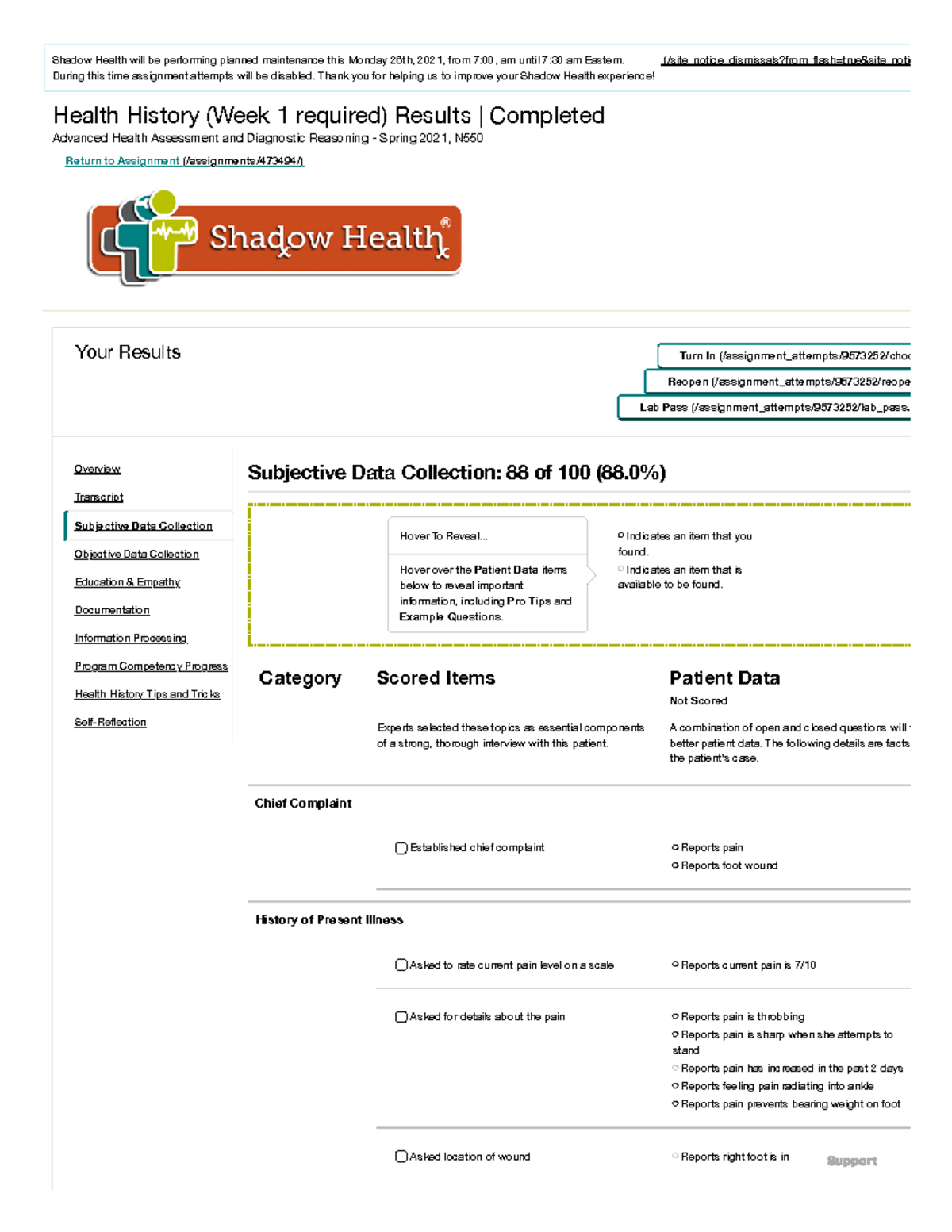 WK 4 Assgn 2 - Shadow Health Digital Clinical Experience Health HistoryWK 4 Assgn 2 - Shadow Health Digital Clinical Experience Health History of Shadow Health Health History Quizlet . Source: www.studocu.com