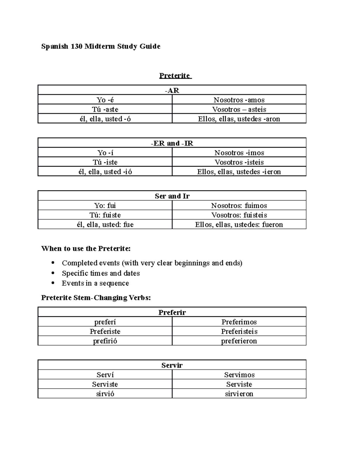 Span130 Midterm Study Guide - Spanish 130 Midterm Study Guide PreteriteSpan130 Midterm Study Guide - Spanish 130 Midterm Study Guide Preterite of Spanish 3 Midterm . Source: www.studocu.com