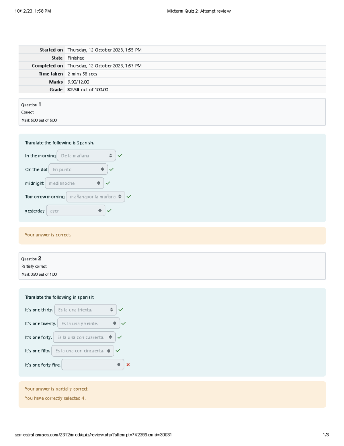 Midterm Quiz 2 Attempt review Attempt review SPANISH - 10/12/23, 1:58Midterm Quiz 2 Attempt review Attempt review SPANISH - 10/12/23, 1:58 of Spanish 3 Midterm . Source: www.studocu.com