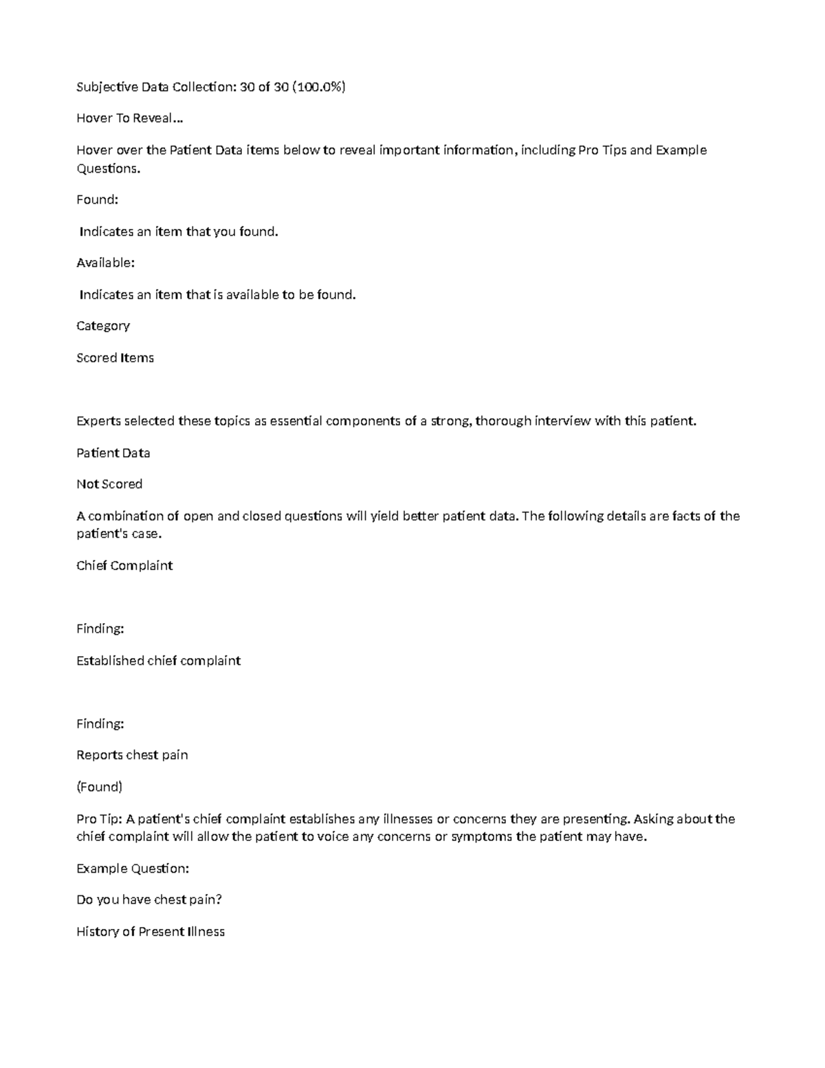 Chest pain, brian foster shadow health subjective data collection:
