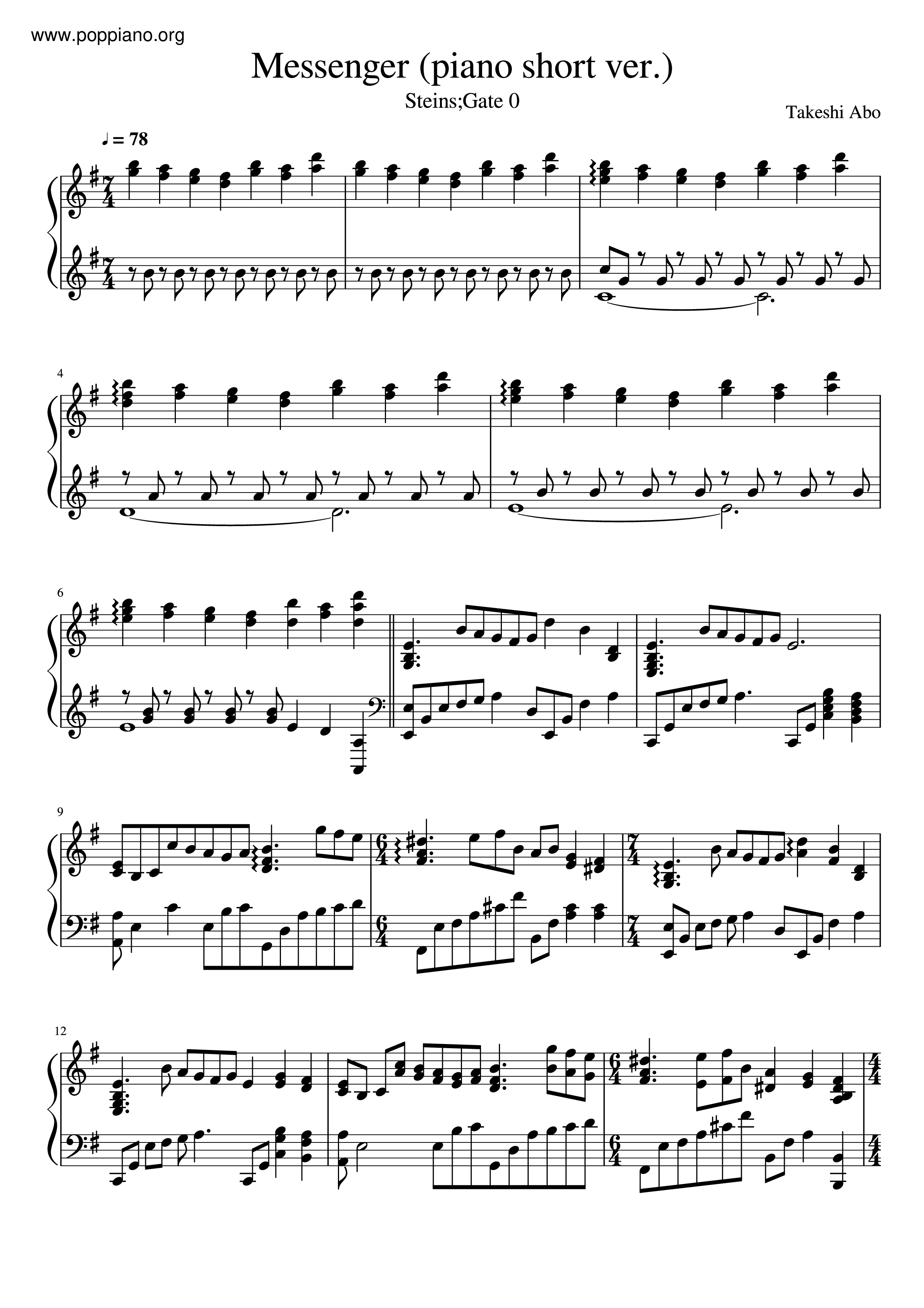 anime-Steins;Gate - Messenger Sheet Music pdf, -シュタインズ・ゲート 楽譜 (アニメソングanime-Steins;Gate - Messenger Sheet Music pdf, -シュタインズ・ゲート 楽譜 (アニメソング of Switchpirateschat Messenger . Source: www.poppiano.org