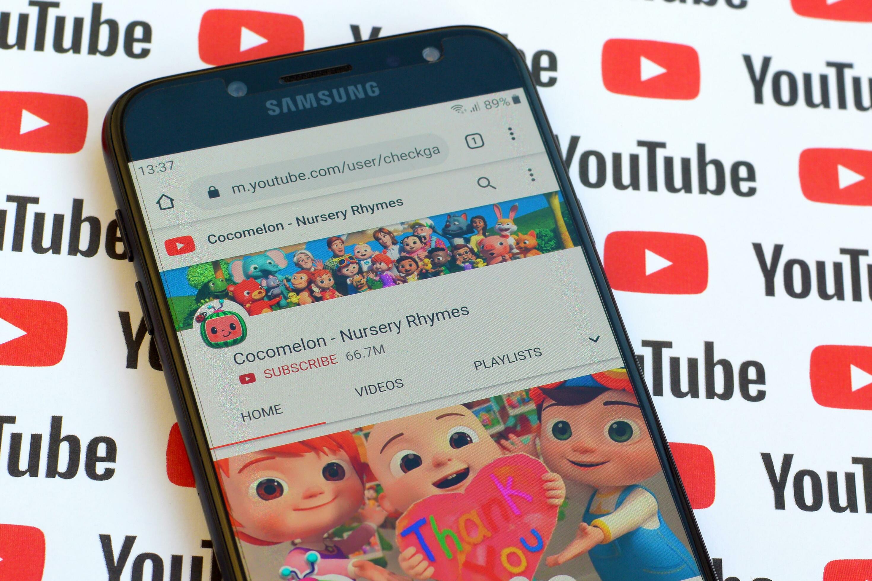 Cocomelon - Nursery Rhymes official youtube channel on smartphone