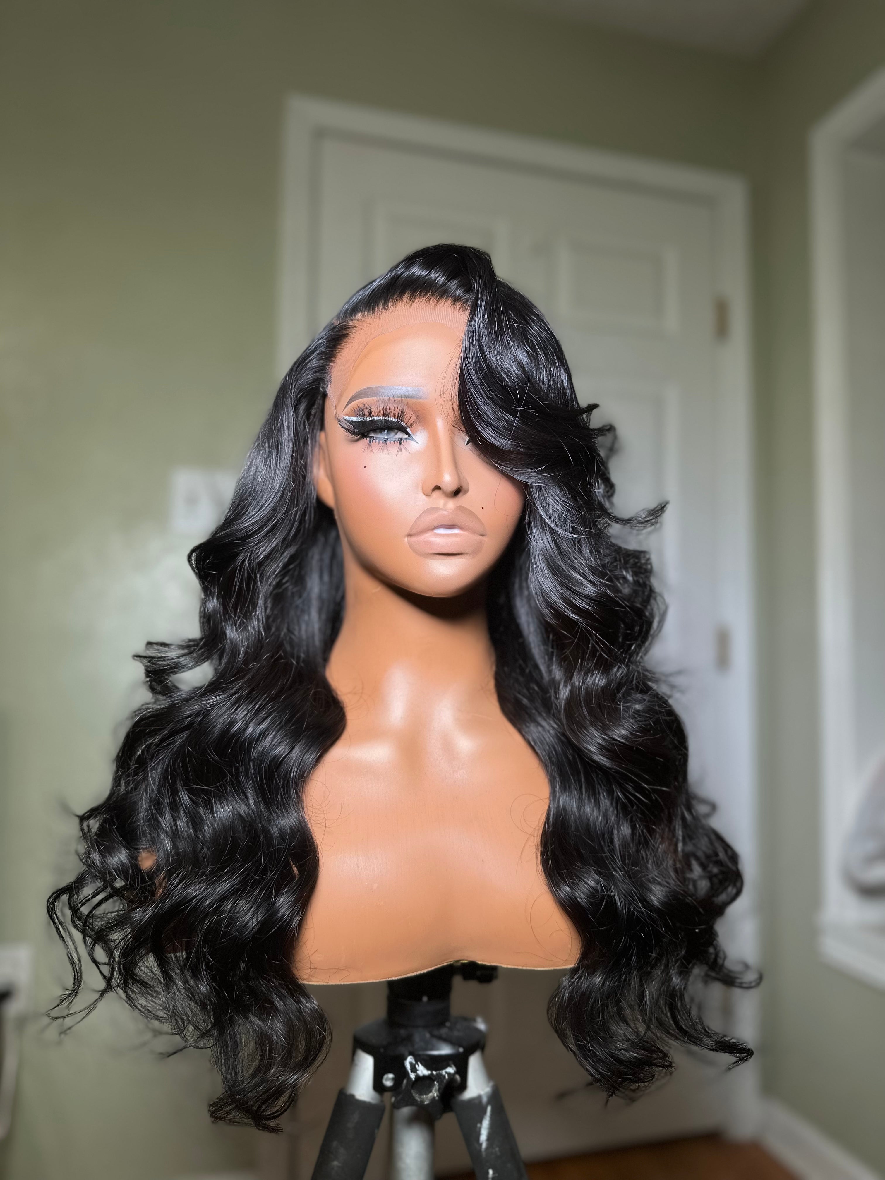 Mostly on the left side (but kind of curled around a bit).