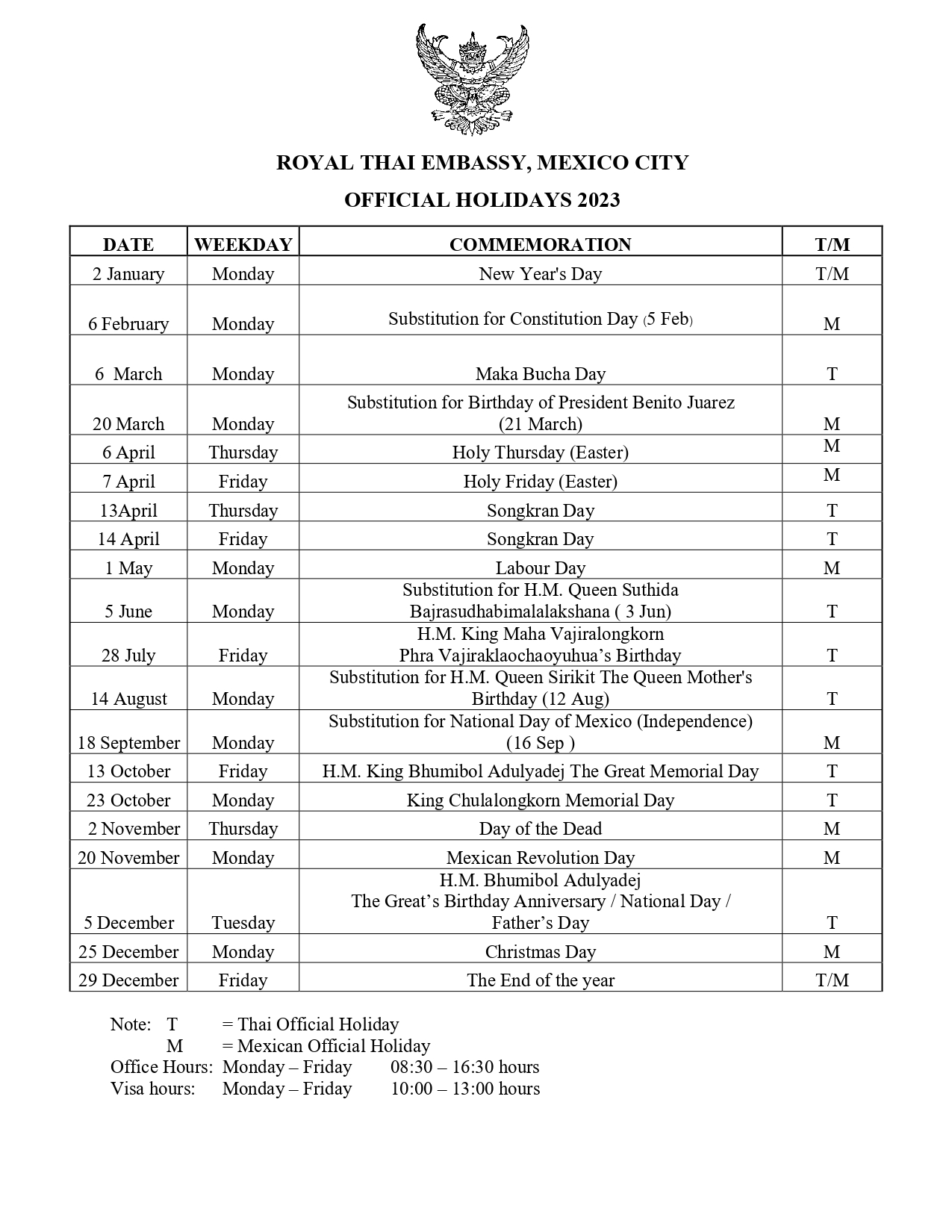 สถานเอกอัครราชทูต/เวลาทำการ และวันหยุดราชการ - สถานเอกอัครราชทูต ณ กรุงสถานเอกอัครราชทูต/เวลาทำการ และวันหยุดราชการ - สถานเอกอัครราชทูต ณ กรุง of What Are Target Paid Holidays 2023 . Source: mexico.thaiembassy.org