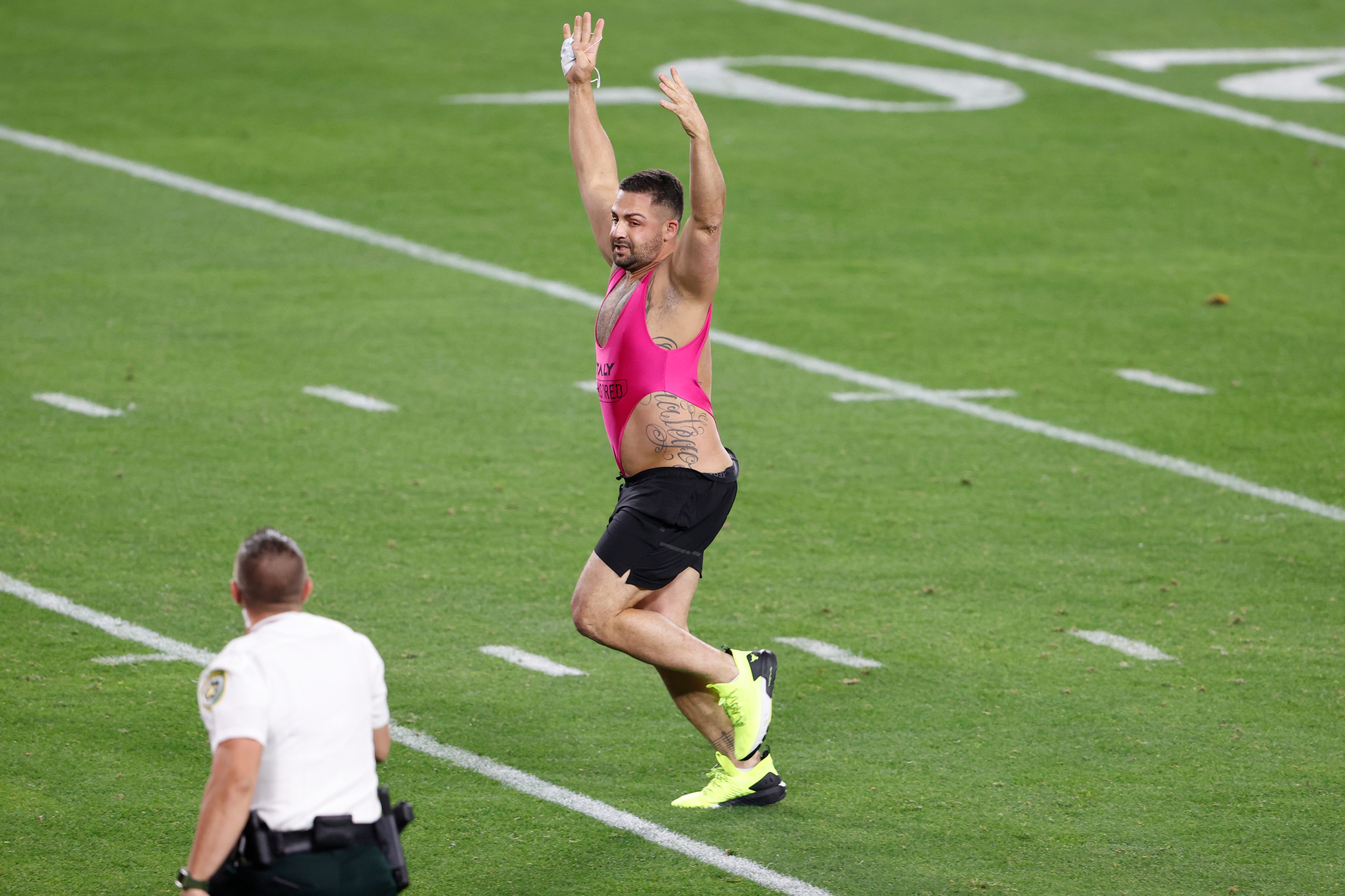 WATCH: Super Bowl LV Streaker in Pink Thong Runs the Field | Heavy.com