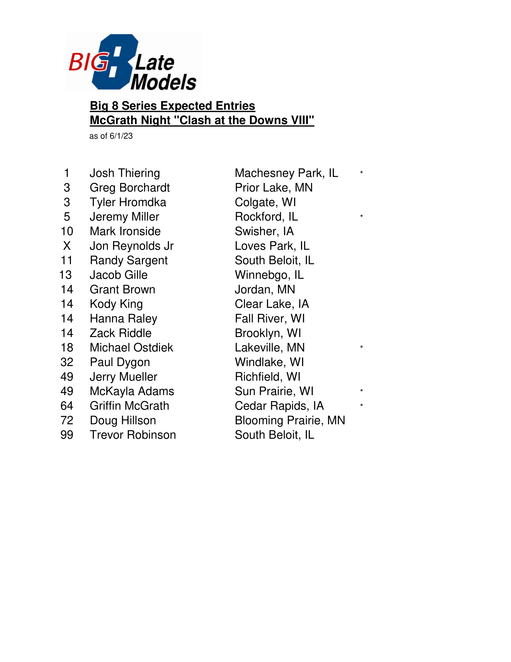 Hawkeye Downs Entry List | Big 8 Late ModelsHawkeye Downs Entry List | Big 8 Late Models of Wheeling Downs Entries . Source: big8latemodels.com