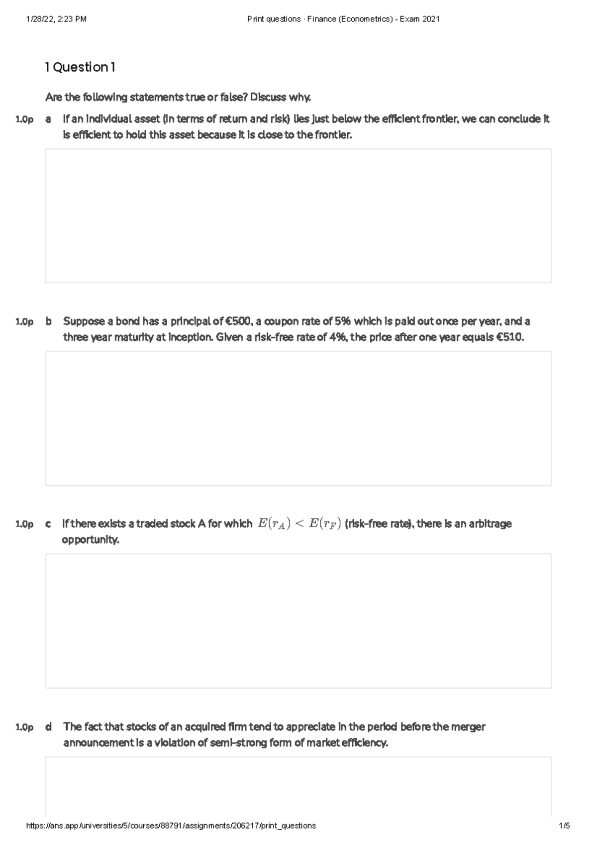 FEB22017X Exam 2021 - 1 Question 1 Are the following statements true or